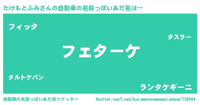 | 欧米人風あだ名 | 『たけもとふみ・ステッグマイヤー』 |