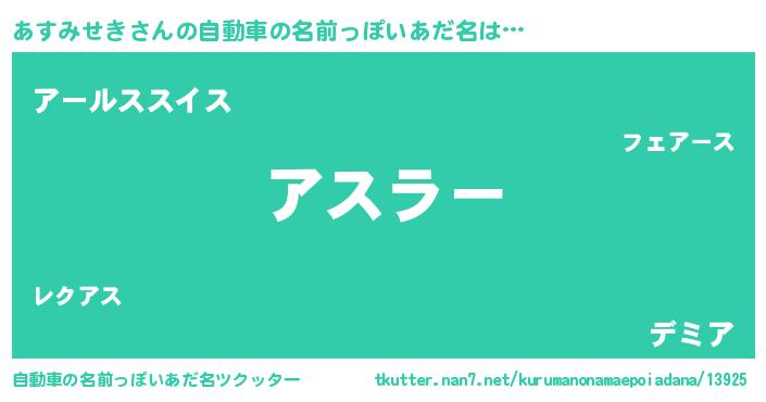 | 女子向けラノベタイトル風あだ名 | 『あすみせきの婚約者』 |