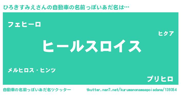 | 女子向けラノベタイトル風あだ名 | 『ひろきすみえの玉の輿計画!』 |