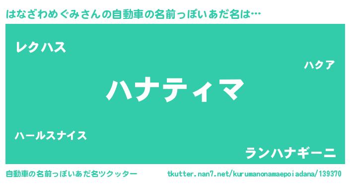 | ファンタジー風あだ名 | 『ハナフェル』『ゼハナトゥ』 |