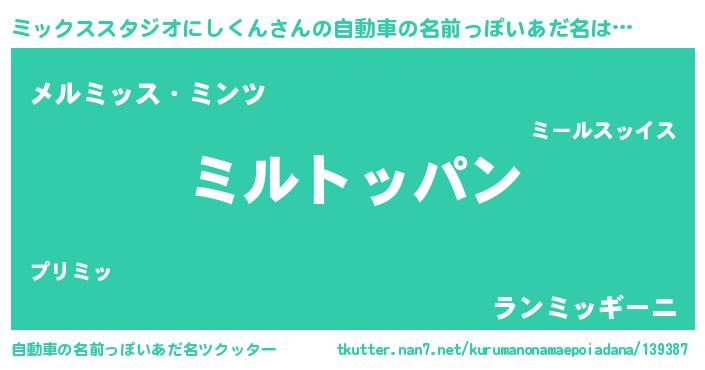 | 欧米人風あだ名 | 『ウサインミックススタジオにしくん』 |