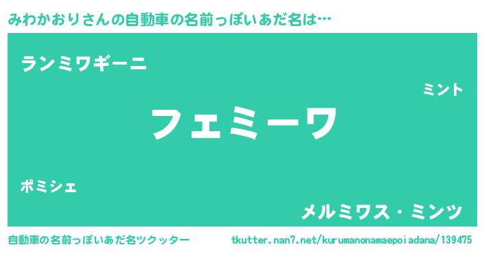 | 欧米人風あだ名 | 『みわかおり・ステッグマイヤー』 |