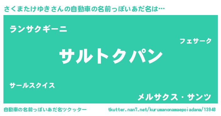 | 欧米人風あだ名 | 『ウサインさくまたけゆき』 |