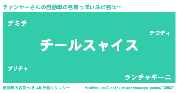 | ヘコむあだ名 | 『チャンヤー(震え声)』『チャっふぃ~』 |
