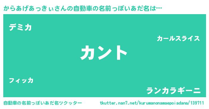 | 男性向けラノベタイトル風あだ名 | 『からあげあっきぃの嫁は女の子じゃないと思った?』 |