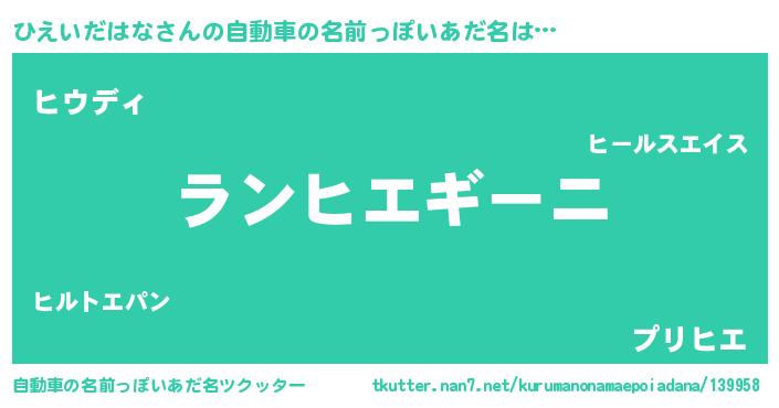 | 意味不明あだ名 | 『住所不定無職ひえいだはな(77歳)』 |