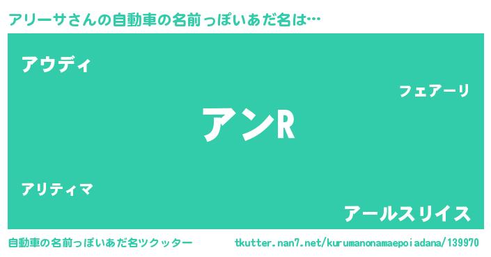 | 男性向けラノベタイトル風あだ名 | 『ノーゲーム・ノーアリーサ』 |