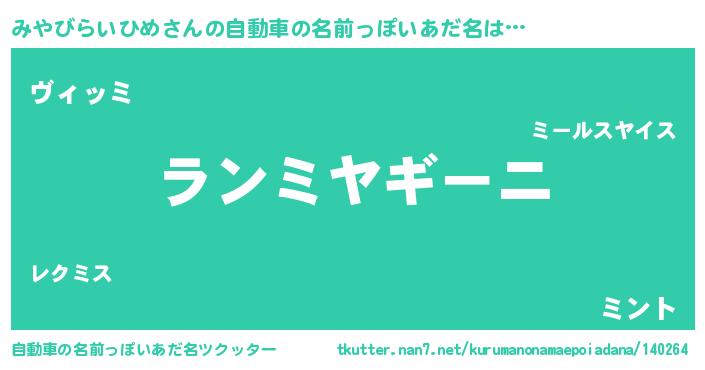 | ヒーロー風カッコイイあだ名 | 『ネオミヤビライヒメ』『幻影騎士ミヤ』 |