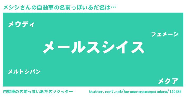 メシシさんの自動車の名前っぽいあだ名をツクッター!