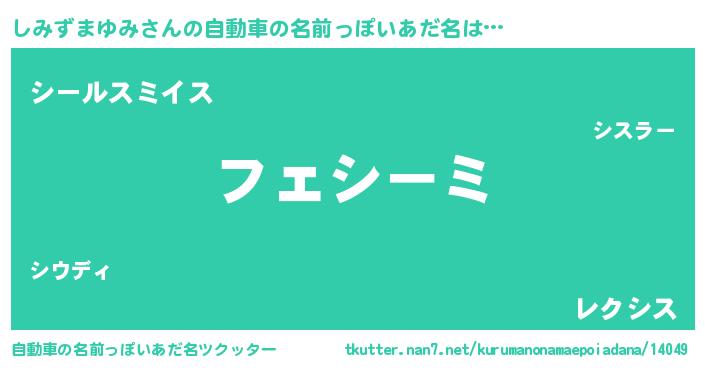 | 欧米人風あだ名 | 『しみずまゆみ・ステッグマイヤー』 |