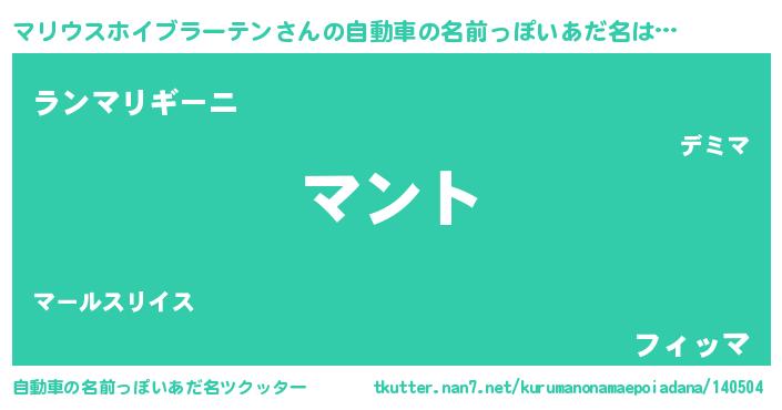 | 男性向けラノベタイトル風あだ名 | 『マリウスホイブラーテンの嫁は女の子じゃないと思った?』 |