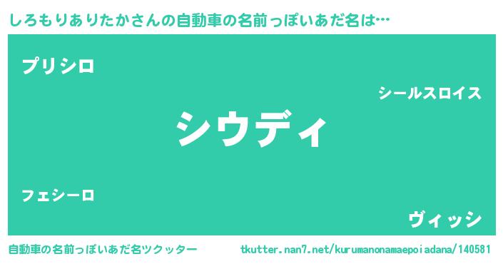 | 女子向けラノベタイトル風あだ名 | 『乙女ゲームの破滅フラグしかない悪役しろもりありたかに転生してしまった…』 |