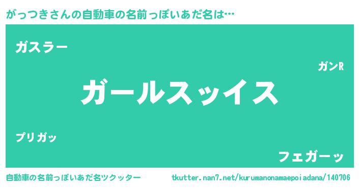 がっつきさんの自動車の名前っぽいあだ名をツクッター!