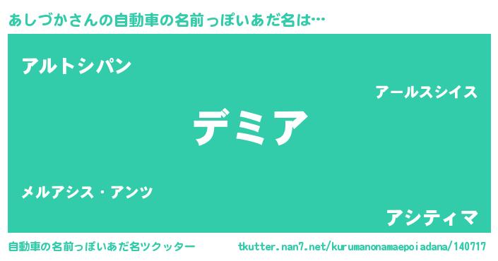 | 胡散臭い通販商品みたいなあだ名 | 『絶対に幸福をもたらす水素水…その名も「あしづか」』 |