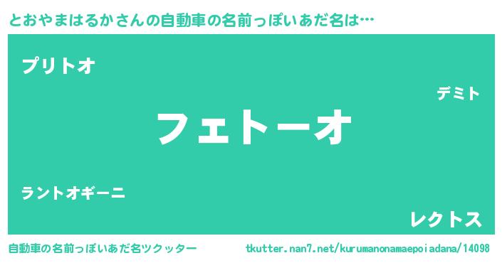 | 胡散臭い通販商品みたいなあだ名 | 『億万長者になれる水晶球…その名も「とおやまはるか」』 |