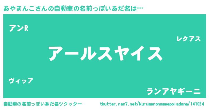 | 男性向けラノベタイトル風あだ名 | 『アヤマンコスレイヤー』 |