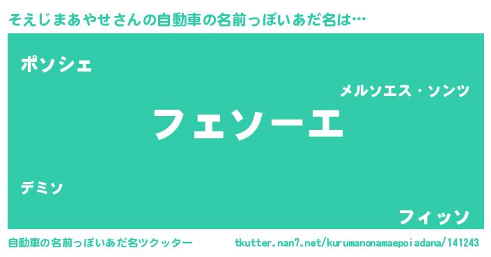 | ヘコむあだ名 | 『そえじまあやせ(爆)』『そえもー』 |