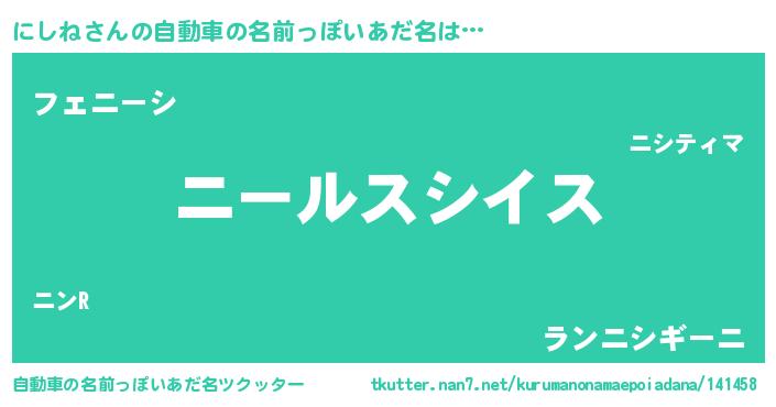 | 胡散臭い通販商品みたいなあだ名 | 『必ず成功する霊験あらたかなお札…その名も「にしね」』 |