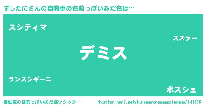 | 胡散臭い通販商品みたいなあだ名 | 『絶対に幸福をもたらす水素水…その名も「すしたに」』 |