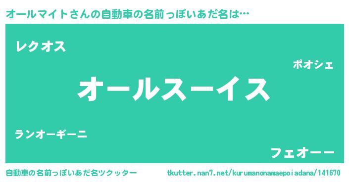 | 男性向けラノベタイトル風あだ名 | 『オールマイトスレイヤー』 |