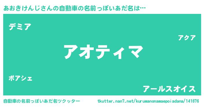 | 男性向けラノベタイトル風あだ名 | 『アオキケンジアートオンライン』 |