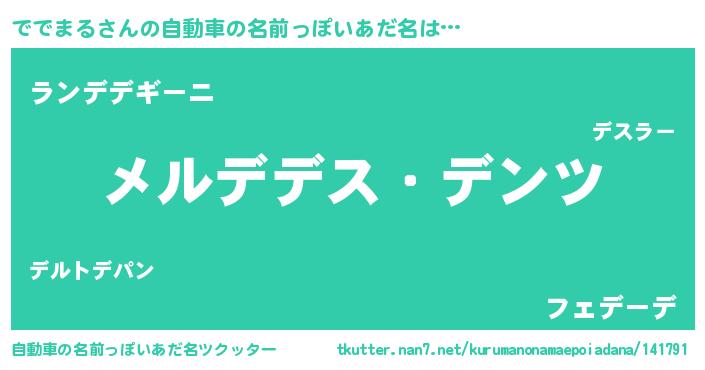 | 男性向けラノベタイトル風あだ名 | 『Re:ででまるから始める異世界生活』 |