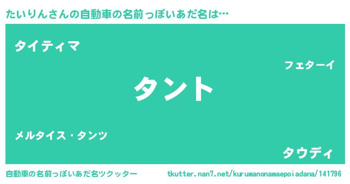 | 男性向けラノベタイトル風あだ名 | 『たいりんの嫁は女の子じゃないと思った?』 |