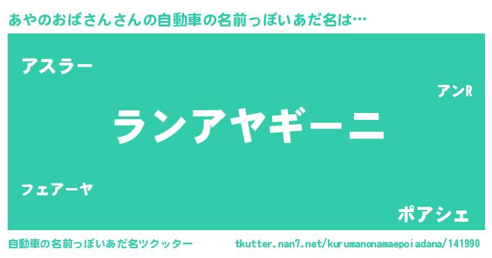 | 欧米人風あだ名 | 『アンジェラ・あやのおばさん』 |