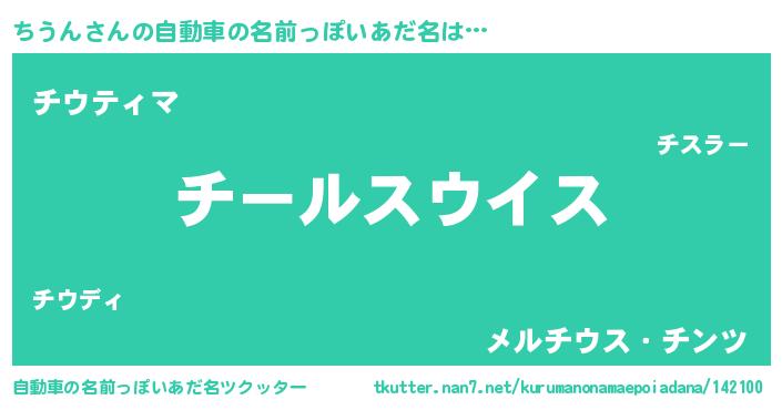 | 男性向けラノベタイトル風あだ名 | 『チウンスレイヤー』『魔弾の王とちうん』 |