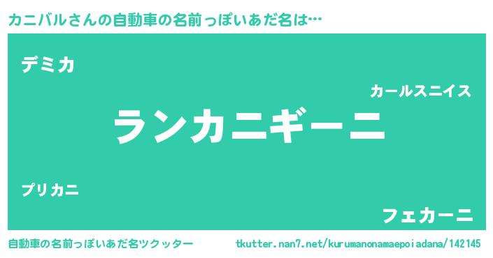 | 胡散臭い通販商品みたいなあだ名 | 『来世でも幸せになれる健康食品…その名も「カニバル」』 |