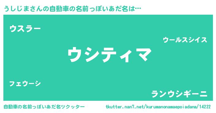 | 胡散臭い通販商品みたいなあだ名 | 『億万長者になれるブレスレット…その名も「うしじま」』 |