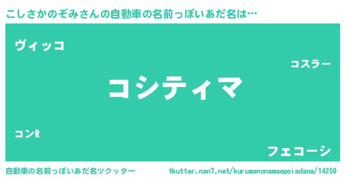 | ヘコむあだ名 | 『こしっふぃ~』『こしさかのぞみ(小並感)』 |