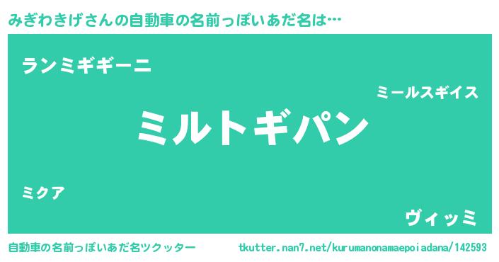| 欧米人風あだ名 | 『ウサインみぎわきげ』 |