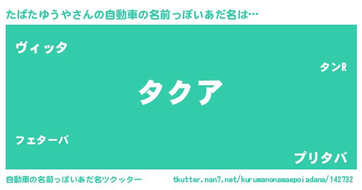 | 女子向けラノベタイトル風あだ名 | 『たばたゆうやの雑貨屋さん』 |