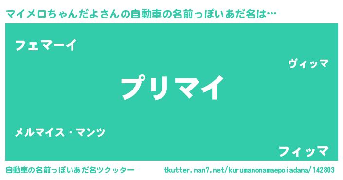 | 女子向けラノベタイトル風あだ名 | 『(仮)マイメロちゃんだよのやんごとなき事情』 |