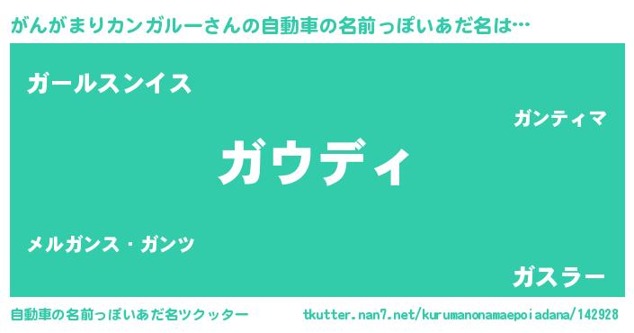 | 男性向けラノベタイトル風あだ名 | 『魔弾の王とがんがまりカンガルー』 |