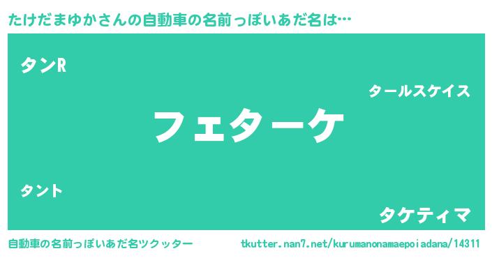 | 胡散臭い通販商品みたいなあだ名 | 『100人中100人が認めたイリジウム磁石…その名も「たけだまゆか」』 |