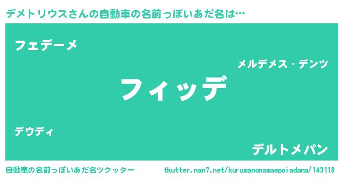 | 男性向けラノベタイトル風あだ名 | 『おまえをオタクにしてやるから、俺をデメトリウスにしてくれ! 』 |