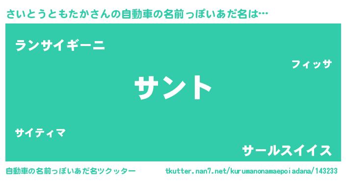 | 意味不明あだ名 | 『とにかく怪しいさいとうともたか』 |