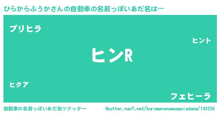 | 男性向けラノベタイトル風あだ名 | 『ノーゲーム・ノーヒラカラフウカ』 |