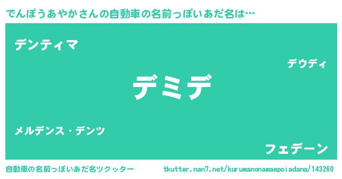 | ヘコむあだ名 | 『でんぽうあやか(笑)』『でんにー』 |