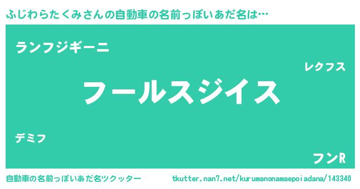| 男性向けラノベタイトル風あだ名 | 『転生したらふじわらたくみだった件』 |