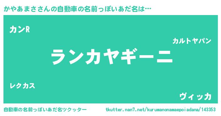| ヒーロー風カッコイイあだ名 | 『慈愛の使者かやあまさ』『暗黒騎士カヤ』 |
