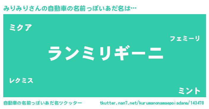 | ポケモン風あだ名 | 『ミリゴンZ』『ミリミダネ』 |