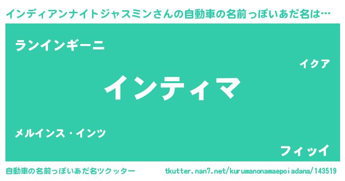 | 男性向けラノベタイトル風あだ名 | 『インディアンナイトジャスミンアートオンライン』 |