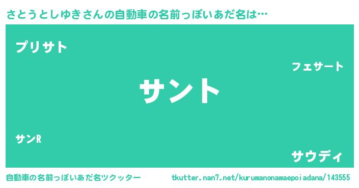 | 欧米人風あだ名 | 『ウサインさとうとしゆき』 |