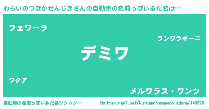 | 男性向けラノベタイトル風あだ名 | 『わらいのつぼかせんじきという概念が存在しない退屈な世界 』 |