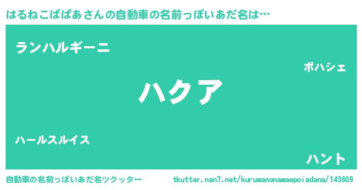 | 欧米人風あだ名 | 『はるねこばばあクリステル』 |