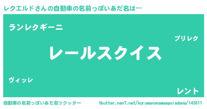 | 胡散臭い通販商品みたいなあだ名 | 『信頼と実績のサプリメント…その名も「レクエルド」』 |