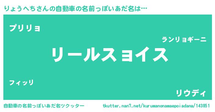 | 女子向けラノベタイトル風あだ名 | 『りょうへちの玉の輿計画!』 |